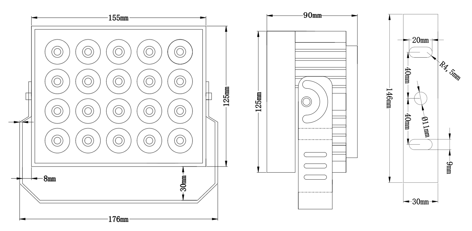 外型尺寸:L155*W125*H90mm